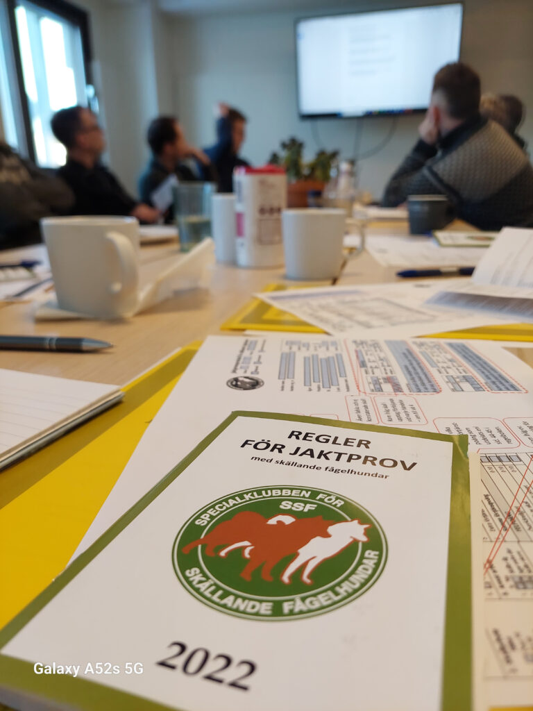 Allt som allt fick vi ihop 12 medlemmar från tre lokalklubbar som i och med denna dag tagit sina första steg mot att bli domare. Örjan visade sig vara en fullfjädrad pedagog och regelboken gicks igenom från pärm till pärm. Vi hann äta och fika lite också och självfallet surrades det hundar och fågeljakt.